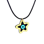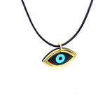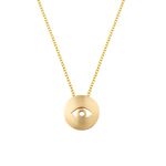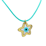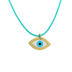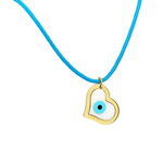 Χρυσή παράσταση 14kt με ματάκι και ενσωματωμένη σφαίρα από τυρκουάζ που μπορεί να συνδυαστεί με σιέλ ή ροζ κορδόνι με χρυσό κλιπ 14kt.