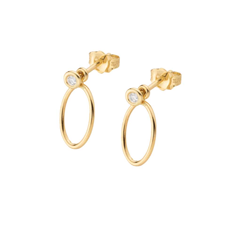 Σκουλαρίκια σε κίτρινο χρυσό 14kt με φυσικά διαμάντια σε round brilliant cut. Τα σκουλαρίκια φοριούνται με 3 διαφορετικούς τρόπους (3 ζευγάρια σε 1).