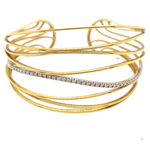 Βραχιόλι σε κίτρινο χρυσό 18kt με ιδιαίτερα πρωτότυπο σχέδιο. Το βραχιόλι φέρει μικρά διαμάντια brilliant cut εξαιρετικής ποιότητας, είναι εντυπωσιακά πλατύ στον καρπό, ενώ η χειροποίητη κατασκευή του πραγματοποιήθηκε με μασίφ χρυσό.
