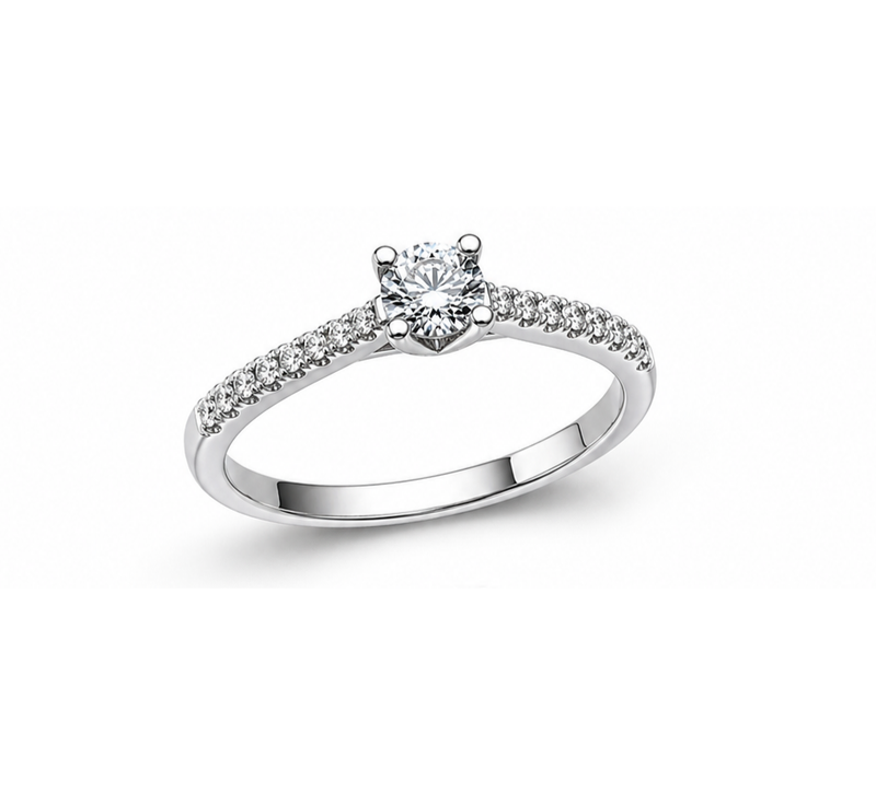 Μονόπετρο σε λευκό χρυσό 18kt με διαμάντι κοπής brilliant. Το σχέδιο επιδέχεται αδαμαντοδεσίες στον κεντρικό λίθο από 0,25ct έως 0.30ct ενώ τη λάμψη συμπληρώνει πλαϊνό στόλισμα με μικρότερα και διακριτικά brilliants. Προτείνεται με κεντρικό brilliant 0,25ct VS1/G/3Ex, πιστοποιημένο φυσικά από το GIA και πλευρικά 0,19ct.