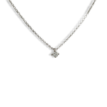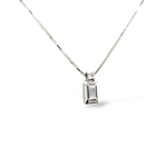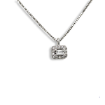Κολιέ σε λευκό χρυσό 18kt με κεντρικό διαμάντι baguette cut και ένα μικρότερο διαμάντι round brilliant cut ενσωματωμένο στην κατασκευή. Απόλυτα λιτό και αφαιρετικό σαν σχέδιο εγγυάται μια διαχρονική επιλογή!