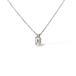 Κολιέ σε λευκό χρυσό 18kt με κεντρικό διαμάντι baguette cut και μικρότερα διαμάντια round brilliant cut περιμετρικά. Απόλυτα λιτό και αφαιρετικό σαν σχέδιο εγγυάται μια διαχρονική επιλογή!