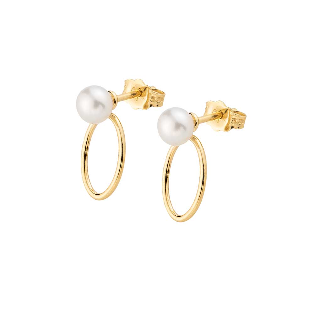 Σκουλαρίκια σε κίτρινο χρυσό 14kt με φυσικά μαργαριτάρια 5-5,5mm. Τα σκουλαρίκια φοριούνται με 3 διαφορετικούς τρόπους (3 ζευγάρια σε 1).